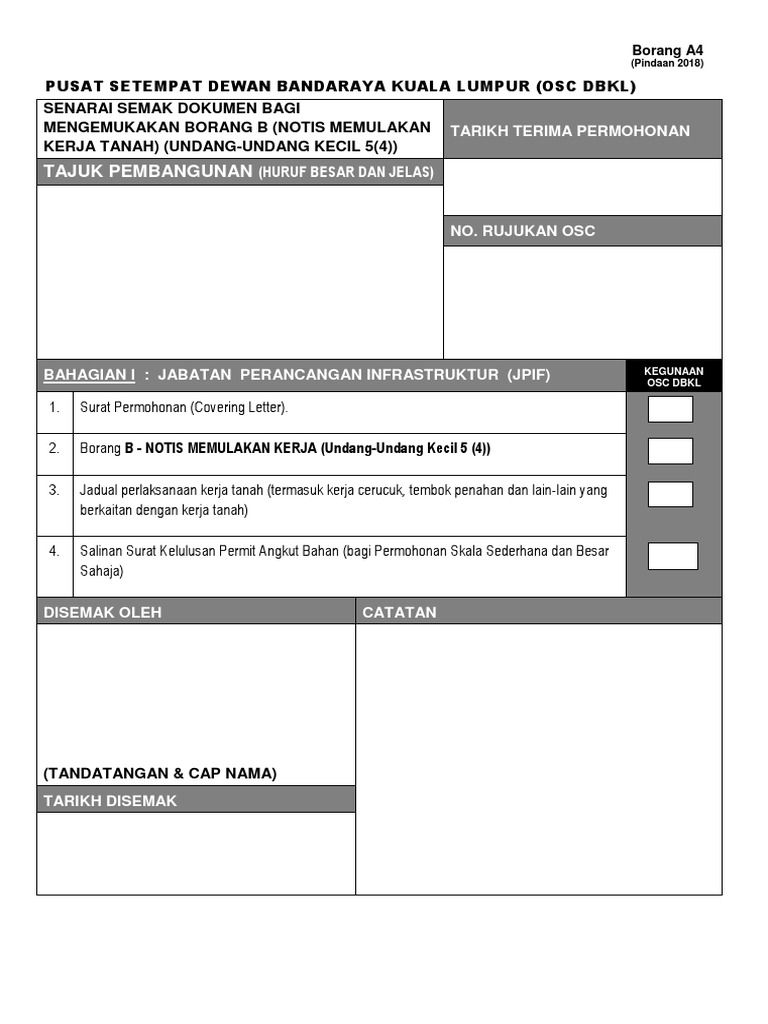 Dbkl Jpif Borang A4 Mengemukakan Borang B 15032018 Pdf